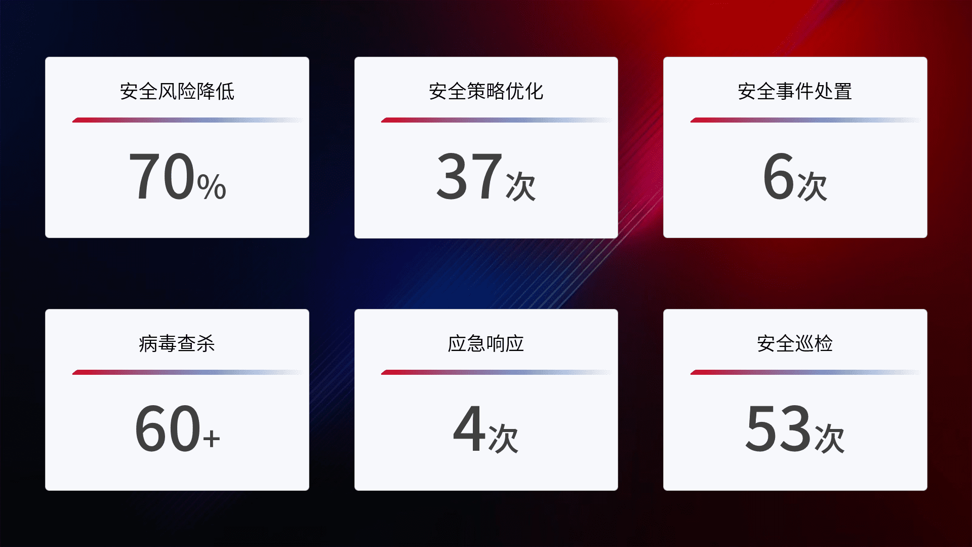 提供全面的安全事件报告体系,,,包括处置报告、、周报、、、、季度和年度总结,,,,结合持续监控,,帮助客户深入了解网络安全状况。。。。