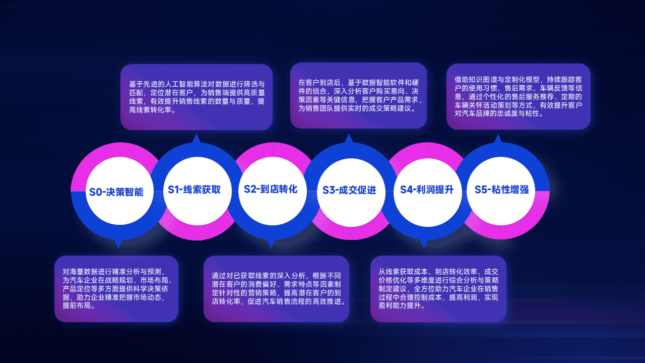 通过拓宽潜在客户来源、、、、优化线索分配并提高到店转化率,,,,以增强销售效率。。。同时,,,利用线索数据不断优化分析模型,,有效提升转化率,,,,扩大营销影响力。。
